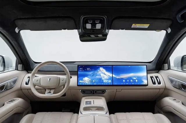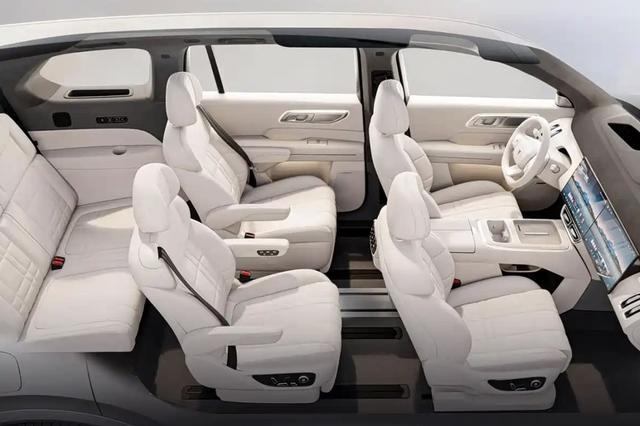 内饰方面,新车以豪华与科技为核心,采用环抱式座舱设计,座舱核心配备前排双15.6英寸2.5K高清联屏与43英寸AR-HUD抬头显示,搭配后排21.4英寸LCD娱乐屏,科技感拉满。同时配备可移动智能中岛、车载冰箱与后排小桌板,实用性拉满,座椅支持多种变换模式,一二排可形成单人床、二三排可连接形成观景模式,兼顾舒适与可玩性。