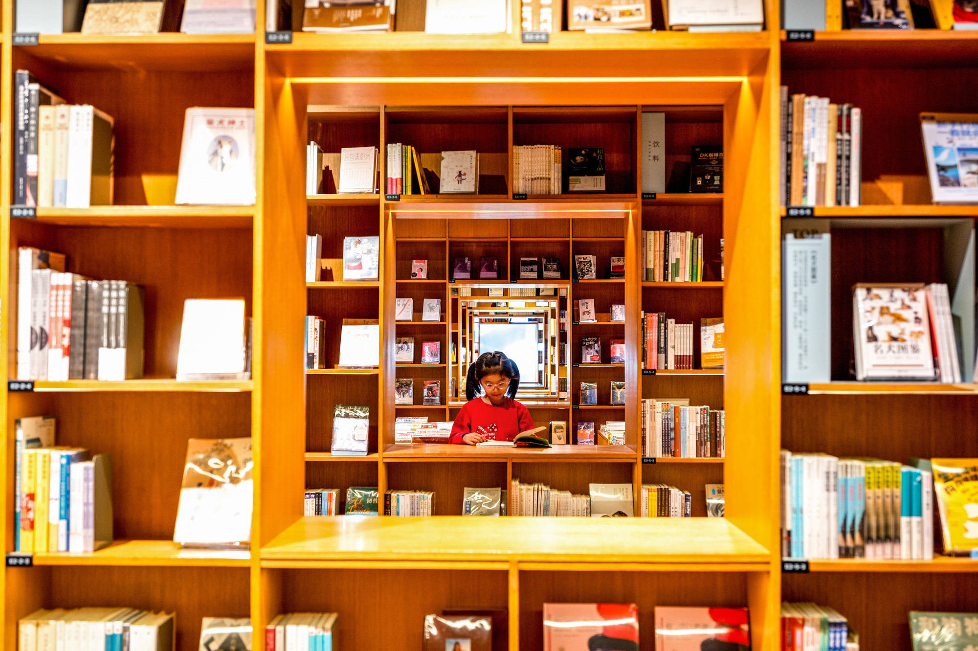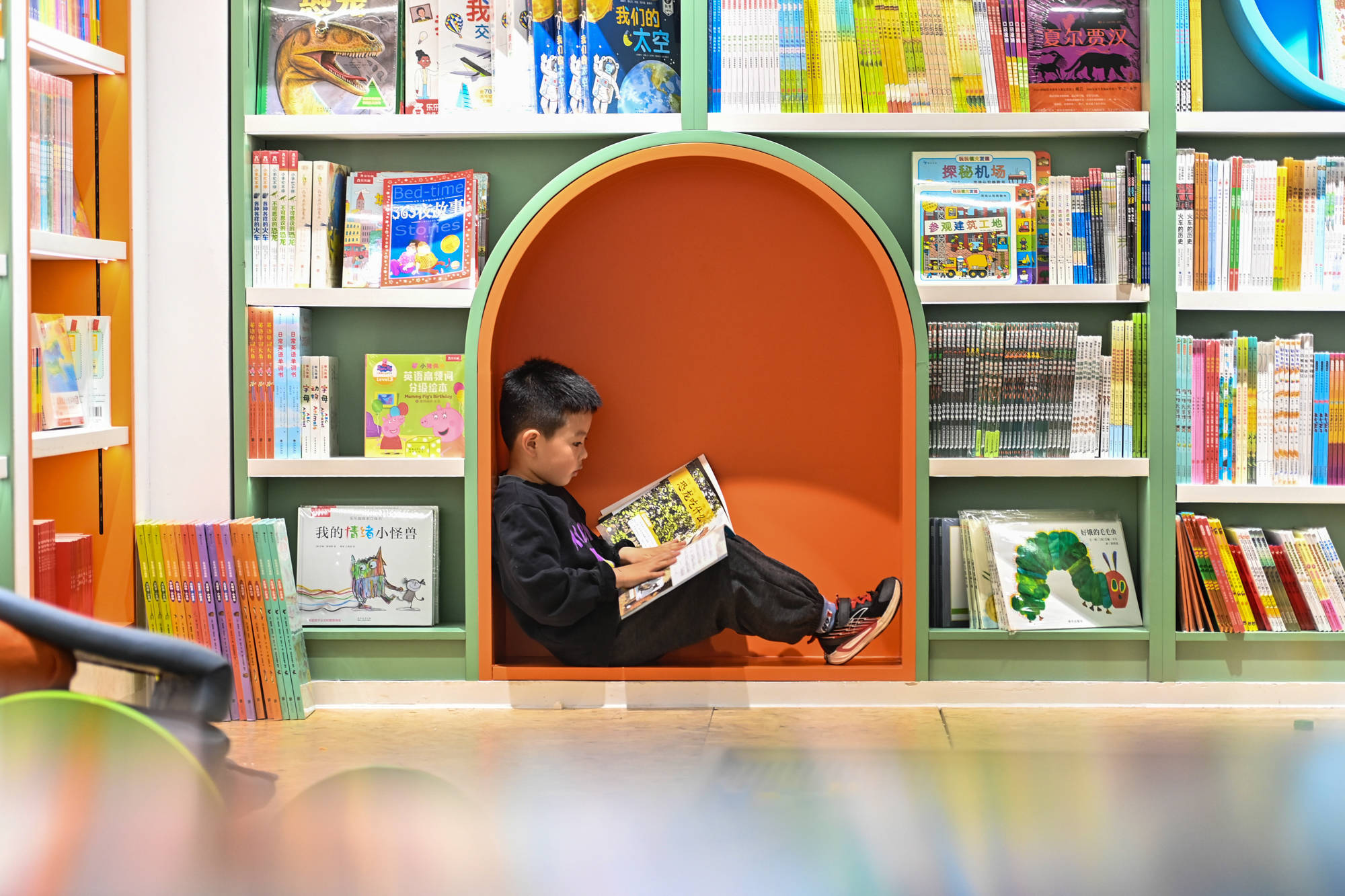 ↑2026年4月11日,一名小朋友在上海市闵行区“光的空间”新华书店内阅读书籍。CICPHOTO/鲍赣生 摄