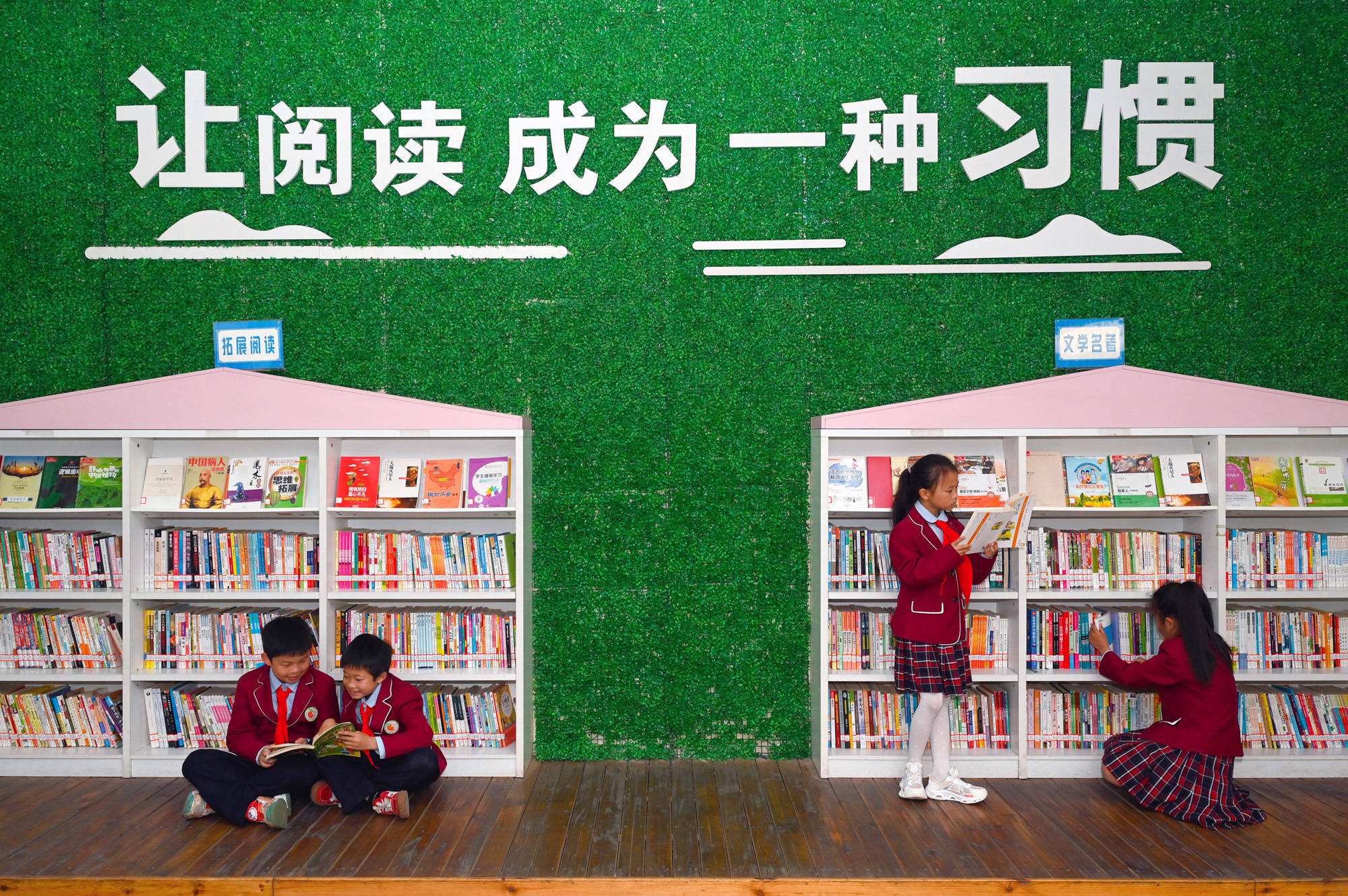 ↑2026年4月20日,学生们在四川省内江市东兴区实验小学图书馆内阅读书籍。CICPHOTO/兰自涛 摄